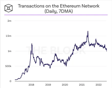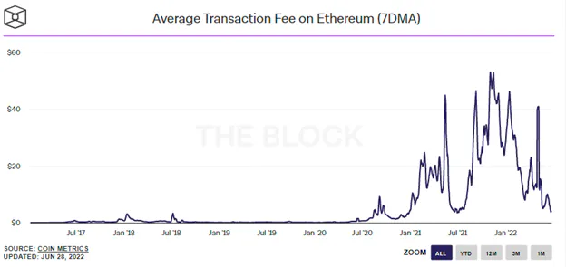 Fee data and charts referenced from: The Block, On-Chain Metrics, Ethereum, June 2022
